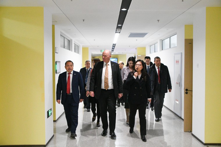 会后,乔文博大使一行实地参观了知信楼智能化多屏研讨教室等教学场所。大使对学校现代化的教学设施、浓厚的学术氛围以及在实践教学方面的投入表示赞赏。
