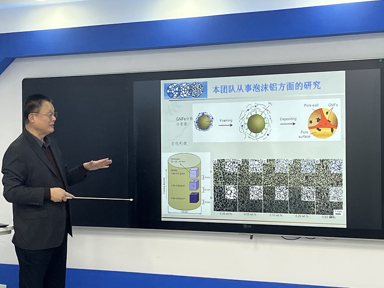 12月4日,杨思一教授在知行楼303智慧教室作学术报告,主题为“泡沫铝:轻量化时代的‘多孔’奇迹”,深入浅出地解析泡沫铝的制造工艺、前沿应用与研究突破,学院部分骨干教师与青年教师参会,报告由机械工程系莫彦彬老师主持。