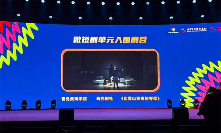 近日,第23届“金刺猬”大学生戏剧季在北京圆满落幕。作为国内最具影响力的大学生戏剧平台,本届赛事吸引了来自清华大学、北京大学、中央戏剧学院、上海戏剧学院等132所高校的406部作品。由我校影视学院表演系教师孟琪执导,表演系主任刘丹、表演系教师刘冠尚与2023级戏剧影视表演专业学生联合创作的戏剧小品《比雪山更高的脊梁》,经过多轮激烈角逐,成功入围“微短剧单元”,展现了黄海学子扎实的专业素养与艺术创造力。