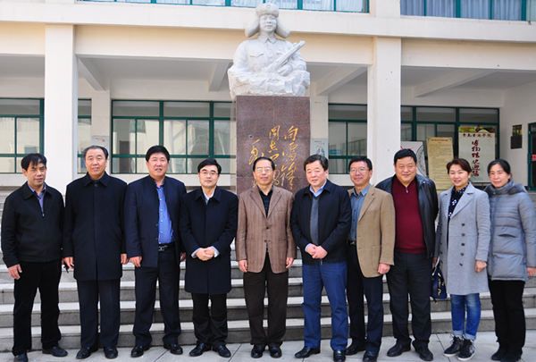 来访领导与我校领导在雷锋像前合影留念