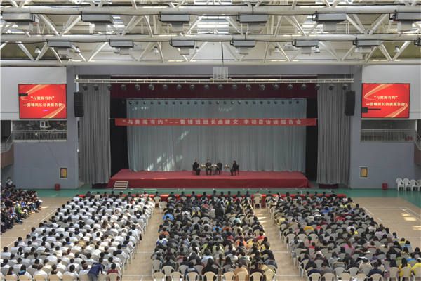 作为我校学雷锋活动月的一项重要内容,3月11日下午,“与黄海有约、与雷锋同行”――雷锋班班长曲建文、李桂臣大型访谈报告会在校体育馆隆重举行。雷锋班第四任班长曲建文、第二十一任班长李桂臣与现场四千多名师生代表一起共话雷锋精神。