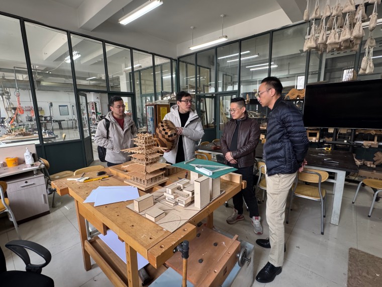 在青岛理工大学,交流团受到该校综合营造实验室负责人、建筑基础教研室程然主任的热情接待。双方围绕建筑营造、木作艺术教学、实训室设备建设与运营管理等核心议题深度研讨,程然主任详细介绍了综合营造实验室建设理念、设备配置标准、功能分区及教学运营模式,分享了设备布局、维护管理、安全保障等实操经验,强调实训室建设需贴合专业教学与学生能力培养需求,并对设计与美术学院主动学习、务实推进实训室建设的态度给予肯定。通过交流,双方就后续实践教学合作、课程共建等事宜达成共识。