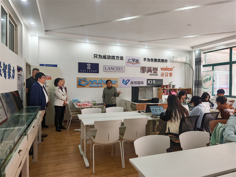 在电商实战工作室,国际商学院徐立娟博士向调研组详细介绍工作室建设成果、跨境电商实战教学、AI+实训创新模式、校企合作项目运营及学生真实出单成效,全面展示学校以实战育人才、以产教强专业的鲜明特色,获得调研组高度评价。