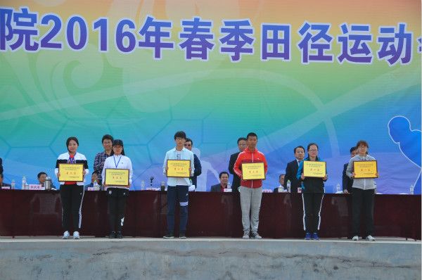 为将此次运动会办成一次文明团结、奋发向上的运动会,促进我校精神文明建设,大会还对展现出良好精神风貌的单位进行了表彰:授予影视艺术与教育学院、建筑工程学院、交通与船舶工程学院体育道德风尚奖,授予财经学院、珠山学院、国际电子商务学院优秀组织奖,授予机电工程学院、管理学院、护理与健康学院精神文明奖。希望各单位和广大师生员工向先进学习,以本次运动会为契机,深入开展群众性体育活动,进一步加强文明校园、和谐校园建设。