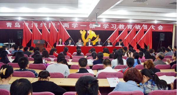 首先,党委副书记宋庆泽代表学校党委作了动员讲话。他指出,中央办公厅、山东省委、青岛市委先后下发文件,部署了在全党开展“两学一做”学习教育的实施方案和意见,校党委对此高度重视,及时传达学习上级有关精神, 认真研究制定了本校的学习教育方案,切实加强组织领导,为学习教育奠定了扎实的基础。就如何组织开展好“两学一做”学习教育,宋庆泽副书记从为什么要开展“两学一做”教育、怎样开展“两学一做”教育和加强对“两学一做”教育的组织领导三个方面进行了全面动员。随后,党委副书记宣读了学校党委《在全校党员中开展“两学一做”学习教育的实施方案》,对学校“两学一做”学习教育进行了全面具体的部署和要求。接着,党委副书记陈玉水宣读了《中共青岛黄海学院委员会关于成立学校“两学一做”学习教育协调领导小组的通知》。管理学院党支部书记魏龙吉同志代表全体党员作表态发言,他表示要积极响应中央和各级党委关于开展“两学一做”学习教育的部署,将学党章党规、学习习近平系列讲话、做合格党员、融入到平日的工作中去,强化支部的战斗堡垒作用,充分发挥党员的先锋模范作用,努力为全面建成小康社会、实现两个一百年奋斗目标,为黄海迎评促建、创建百年名校而努力奋斗。