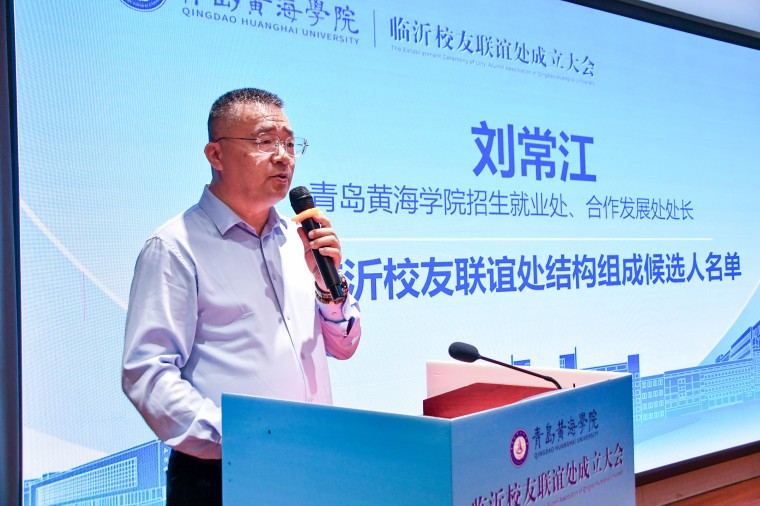 新当选的临沂校友联谊处主任委员赵西金在发言中回顾了在母校的求学时光。他表示,作为首任主任委员深感责任重大,将以身作则、恪尽职守,团结带领校友团队,把联谊处建设成有温度、有活力、有作为的集体。未来将重点做好两方面工作:一是定期组织交流活动,让校友常相聚、常联系,关注校友发展需求;二是积极投身公益,整合各行业校友资源,反哺母校建设,让黄海之花在沂蒙大地绽放出更加绚烂的光彩。