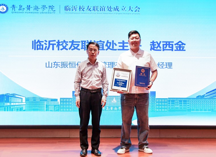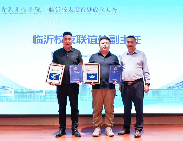 聘书颁发仪式隆重举行。孟广东、刘常江等与会领导依次上台,分别为新当选的组织机构成员颁发聘书。在全场热烈的掌声中,孟广东、刘常江与新任主任委员赵西金共同登台,按下了象征临沂校友联谊处正式成立的启动键,并举行了授牌仪式。标志着青岛黄海学院临沂市校友联谊处正式成立,黄海学子在沂蒙大地从此有了温暖的“家”。