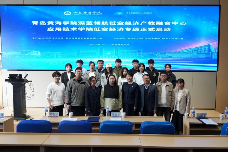 4月23日下午,应用技术学院与青岛深蓝领航科技有限公司联合举办的低空经济校企协同育人专班开班仪式在知行楼434报告厅圆满举行。