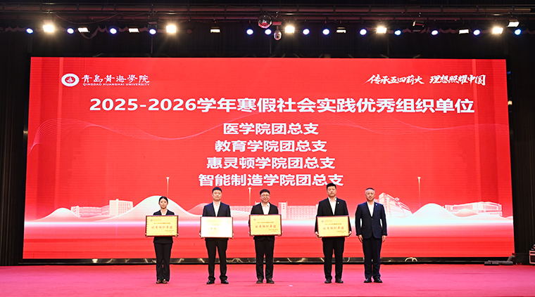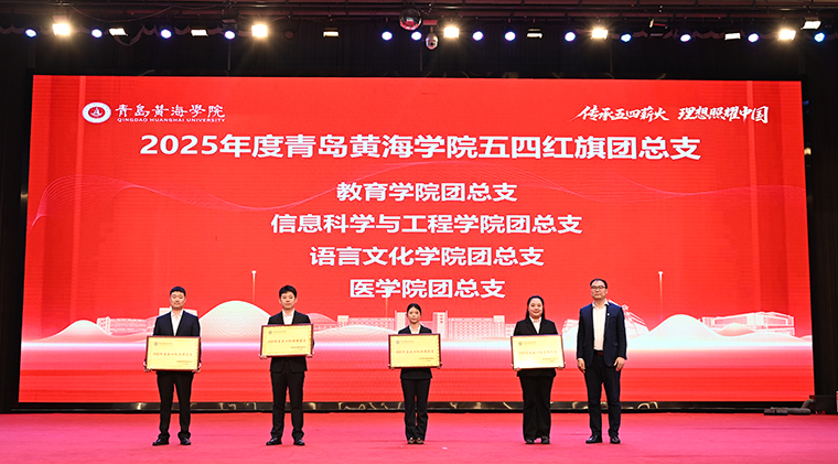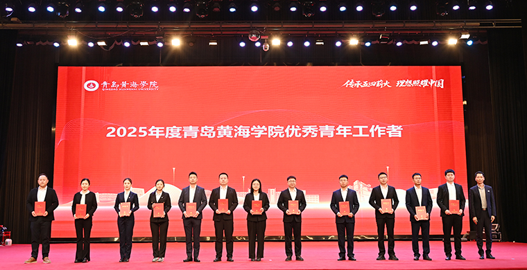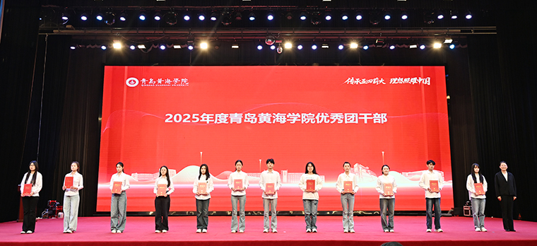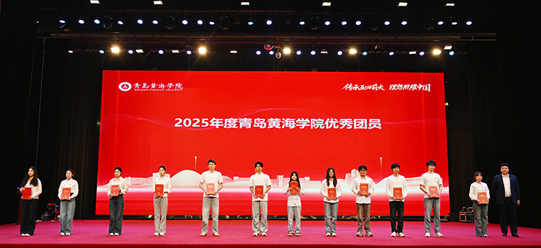 活动现场为2025年度青岛黄海学院优秀团员、2025年度青岛黄海学院优秀团干部、2025年度青岛黄海学院优秀青年工作者、2025年度青岛黄海学院五四红旗团支部、2025年度青岛黄海学院五四红旗团总支颁奖。