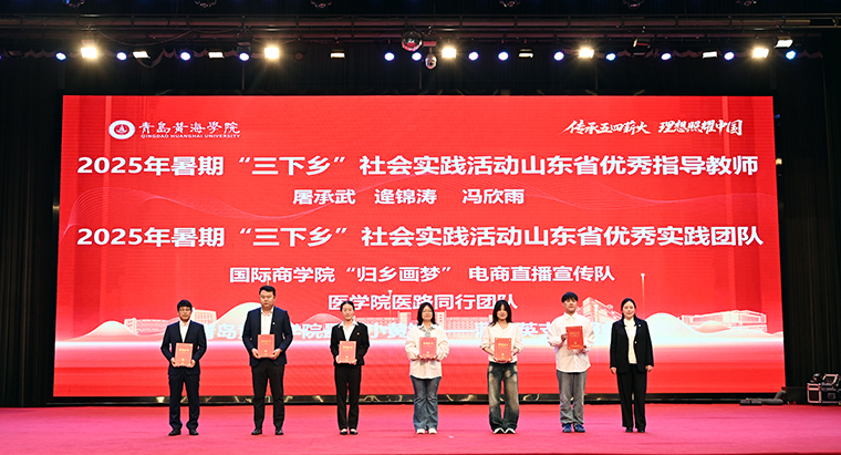 现场为2025-2026学年寒假社会实践先进个人、2025-2026学年寒假社会实践优秀组织单位、2025年山东省暑期“三下乡”社会实践活动特色品牌项目、2025年山东省暑期“三下乡”社会实践活动优秀学生、2025年山东省暑期“三下乡”社会实践活动优秀指导教师、2025年山东省暑期“三下乡”社会实践活动优秀实践团队颁奖。