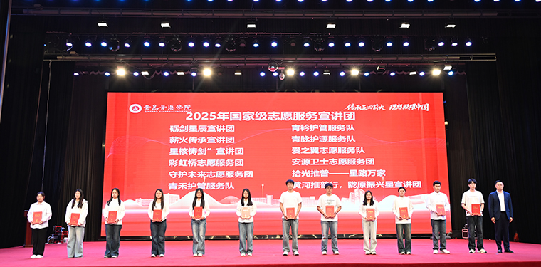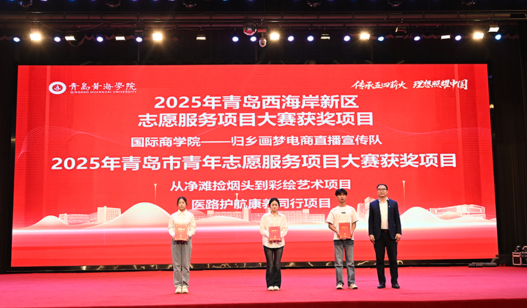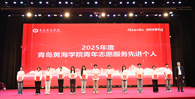 活动现场为2025年度青岛黄海学院青年志愿服务先进个人、2025年度青岛黄海学院青年志愿服务先进集体、2025年度青岛黄海学院优秀青年志愿服务项目、2025年青岛西海岸新区志愿服务项目大赛获奖项目、2025年青岛市青年志愿服务项目大赛获奖项目、2025年国家级志愿服务宣讲团颁奖。