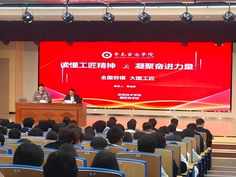 为引导青年学子树立正确的劳动观与价值观,4月27日晚,应用技术学院在知明楼报告厅隆重举行“读懂工匠精神,凝聚奋进力量”主题励志报告会。学院特邀全国劳动模范、大国工匠年度人物、中国中车首席技能专家、青岛市总工会兼职副主席管益辉走进校园宣讲。副院长杜超出席并主持报告会,机电系主任王培芹、学工主任武志强及师生代表参加活动。