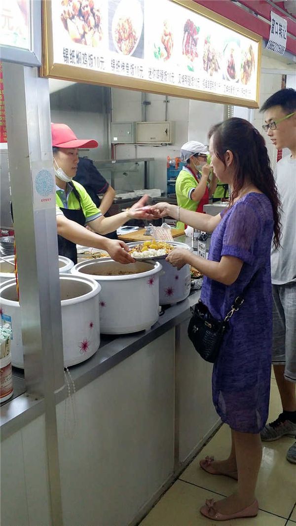 一位新生家长为她的儿子精心挑选了午餐,她表示:“餐厅条件不错,我比较满意。现在条件好了,希望孩子在学校吃好,别委屈自己,好好学习就行了。”