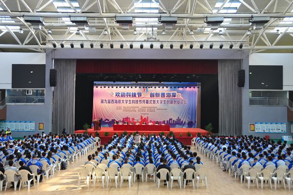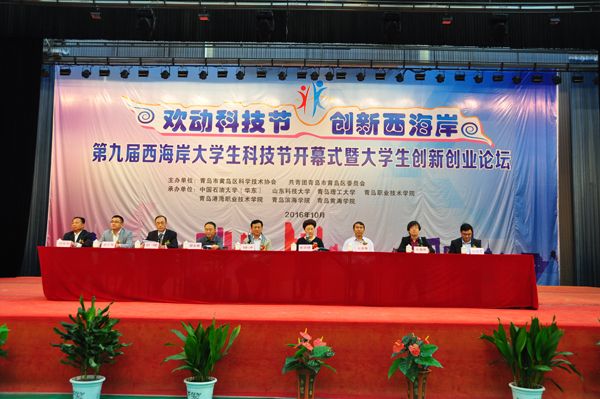 10月14日,第九届西海岸大学生科技节开幕式暨大学生创新创业论坛在我校举行。青岛市科协副主席徐冰、黄岛区政协副主席张文晓、青岛市科协科普部部长郑永祺、青岛市科技馆馆长(青少年科技教育中心主任)戈洪奎、黄岛区科协主席杜晓、黄岛团区委副书记张春艳、青岛黄海学院董事长刘常青、党委副书记及驻区高校师生代表1500余人参加开幕式。