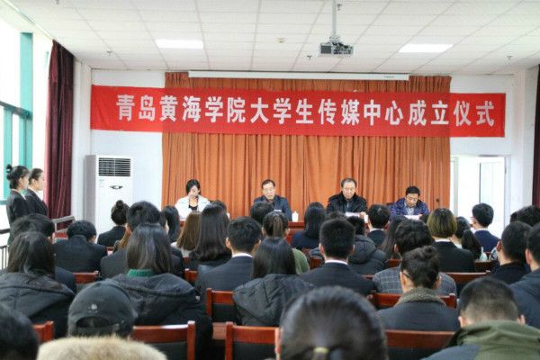 为深入贯彻落实中共中央办公厅、国务院办公厅《关于进一步加强和改进新形势下高校宣传思想工作的意见》文件精神,整合学生资源,集中精力,创新发展,充分做好新形势下的大学生思想引导工作,进一步推动形成校园文化系统化工作格局,将原大学生记者团、黄海之声广播站、校园电视台整合成立青岛黄海学院大学生传媒中心。11月29日下午,青岛黄海学院大学生传媒中心成立仪式在办公楼八楼会议室隆重举行。青岛黄海学院党委副书记宋庆泽,校长助理、综合办公室主任马永来,综合办公室副主任李镇江以及各二级学院各部门教师通讯员出席会议,大学生传媒中心全体成员、其他社团代表参加大会。
