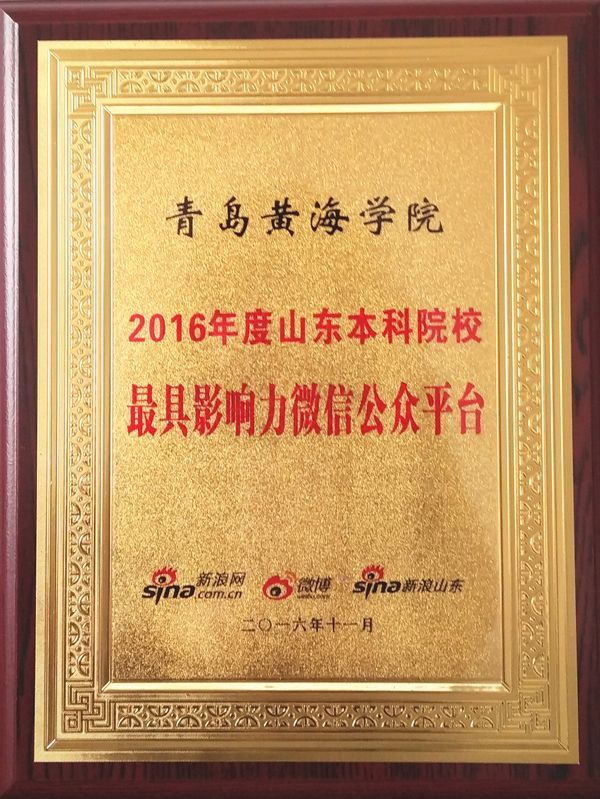 近日,青岛黄海学院在 “新浪山东2016教育盛典”评选中获得三项殊荣:学校荣获“山东最具办学特色本科院校”、董事长刘常青荣获“2016年度山东教育功勋人物”、学校官方微信荣获“山东本科院校最具影响力微信公众平台”。