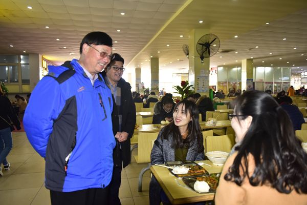 校领导分别在各个餐厅的操作间、售饭窗口等地进行了查看,并向餐厅工作人员详细了解餐厅的卫生安全、饭菜的烹制以及正在进行改造的餐厅施工进度等情况。校领导还与正在就餐的同学亲切交谈,询问他们一日三餐的消费情况和就餐感受,学生普遍表示满意。