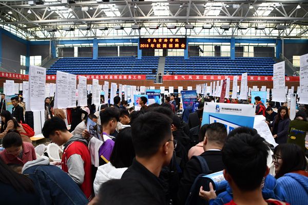 11月7日上午,青岛黄海学院2018年校园招聘会在学校体育馆举行。300多家企业为黄海学院2019届毕业生提供上万个招聘岗位。