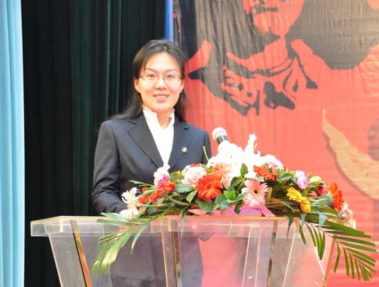 青岛黄海学院团委书记张艳宣读雷锋生前所在团全体官兵给大会发来的贺电