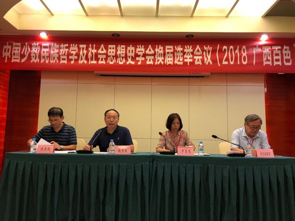 8月27日,中国少数民族哲学及社会思想史学会第五届理事会换届会议在广西壮族自治区百色市紫竹国际大酒店召开。会议选举产生中国少数民族哲学及社会思想史学会第六届理事会,推选了新一届的领导机构,修改了中国少数民族哲学及社会思想史学会章程。学会副理事长朝克吉勒图教授根据党中央、国务院及相关部门的最新文件精神对修改学会章程作说明。
