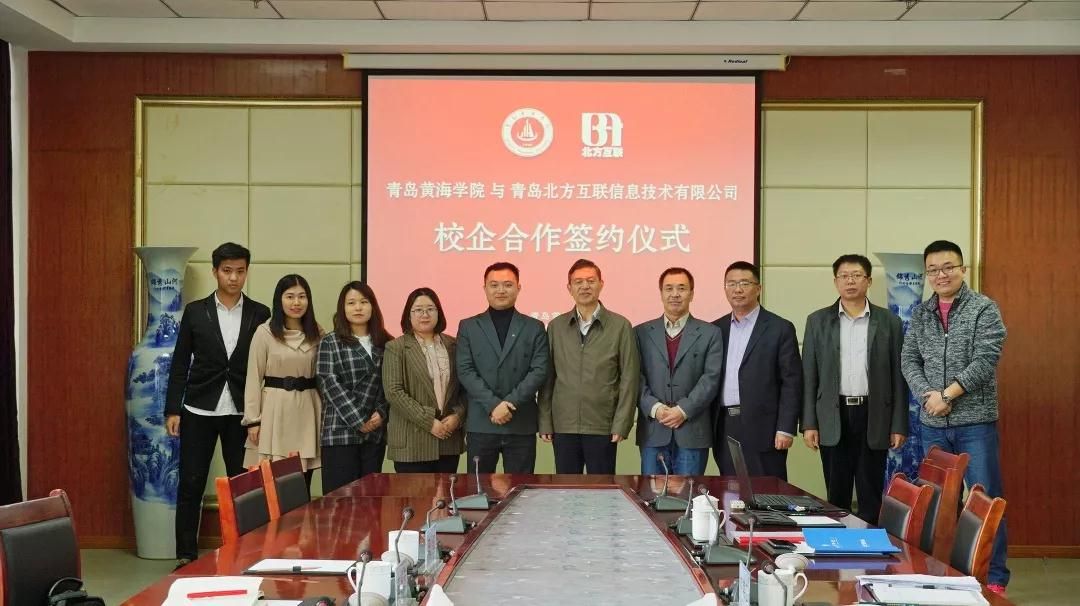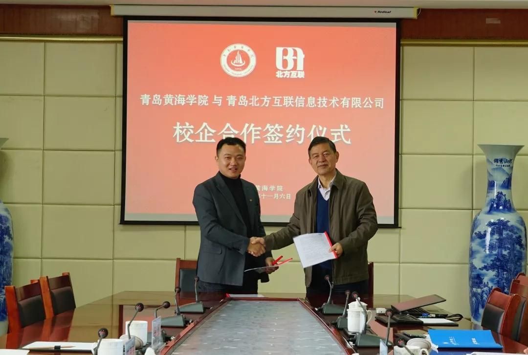 上午十一时许,在所有参会人员的见证下,校长王渊明教授与青岛北方互联信息技术有限公司总经理赵东洋先生签署双方合作协议。