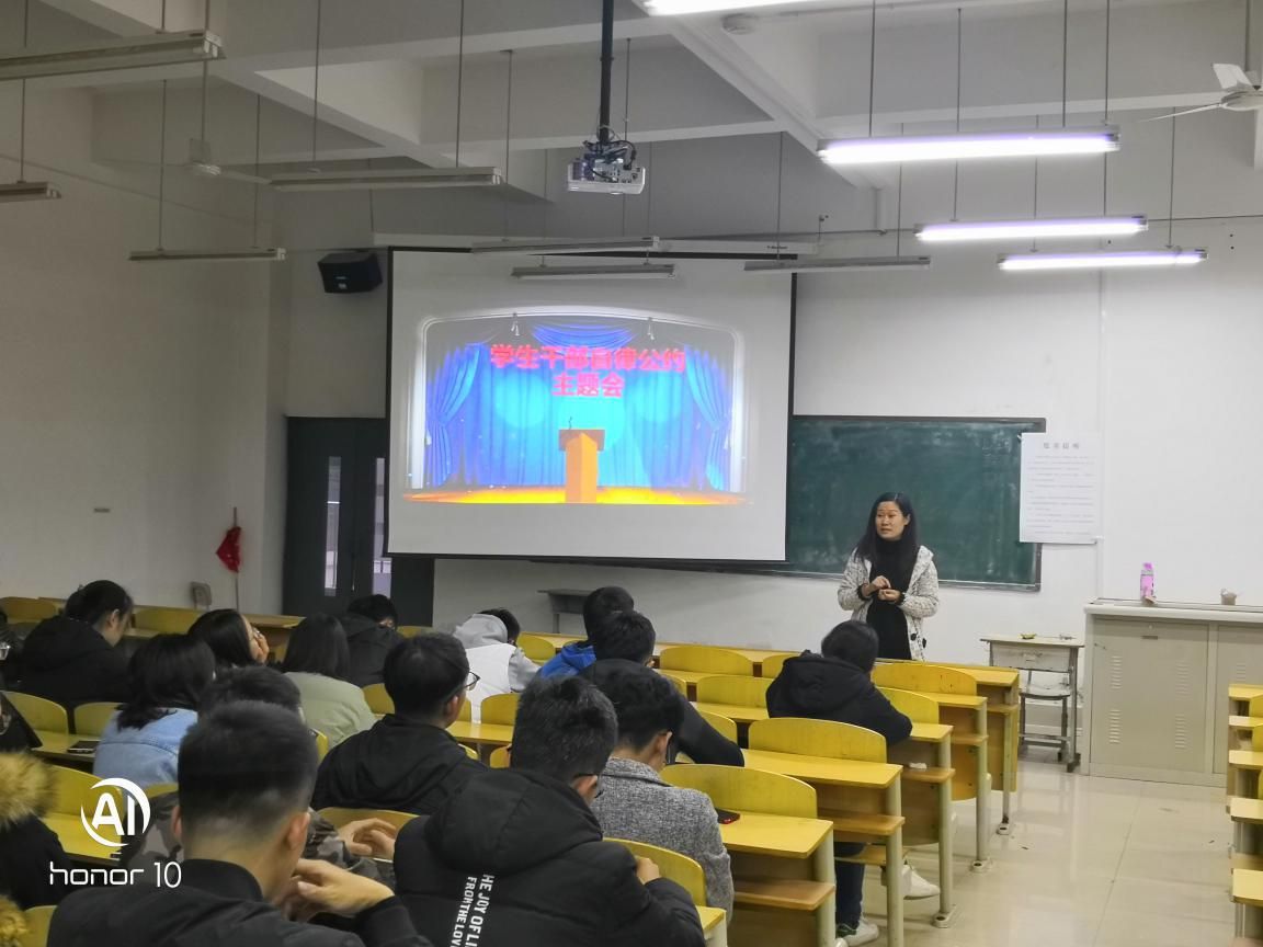 为建设一支胸怀理想、心系同学、品学兼优、作风扎实的学生工作骨干队伍,2018年12月3日下午16点智能制造学院团总支四号教学楼310教室举办了团干部自律公约主题团课。主题团课由臧香伟老师和赵绍利老师主持,学院80余名团干部参加。