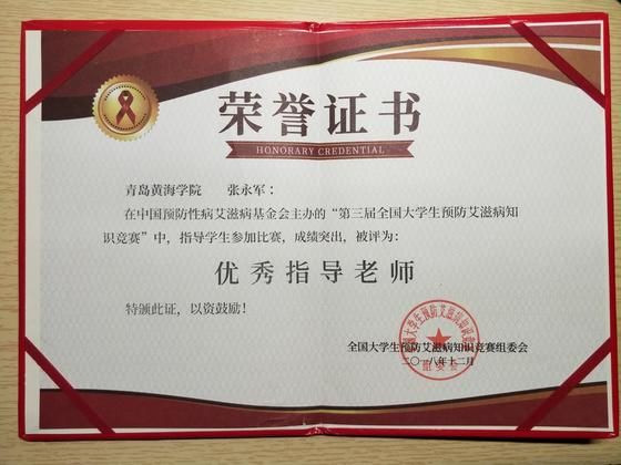 2018年12月,我校志愿者协会组织参加由中国预防性病艾滋病基金会主办,全国一千余所高校协办的“第三届全国大学生预防艾滋病知识竞赛”中,我校志愿者协会荣获优秀组织单位,张永军老师获优秀指导老师,王洁等三位同学获优秀组织者,李道敬等七名同学获优秀志愿者,我校参赛选手共获得一等奖4项,二等奖6项,三等奖10项。