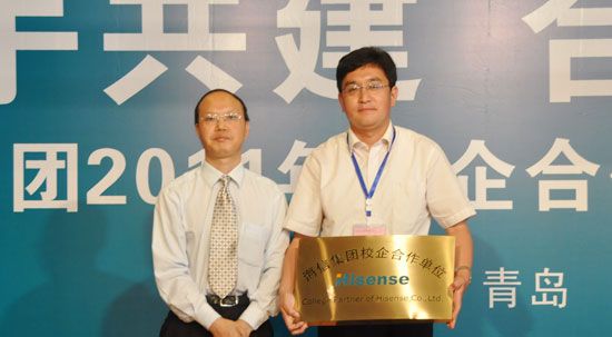 6月16日下午,海信集团在海信大楼举行了“携手共建、合作共赢——海信集团2011年校企合作院校交流会”,学院党委副书记陈玉水、安置办主任张勇到会交流合作经验并签订校企合作意向。