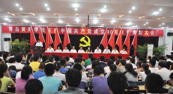 6月28日下午,青岛黄海学院在一号教学楼西报告厅隆重召开了庆祝中国共产党成立90周年暨表彰大会。学院领导、各单位各部门负责人、全体教职工党员、学生党员代表和入党积极分子代表共300余人参加了会议。在主席台就坐的有院党委书记冯宜明,山东省高校工委派驻我院党建联络员陈稷玲,党委副书记及党委全体委员和高职院院直党总支书记贺永宜、综合院院直党总支书记杨春联。会议由学院党委副书记宋庆泽主持。