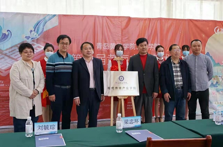 5月18日上午,青岛黄海学院艺术学院联合青岛动漫创意产业协会、青岛影视制片人协会、山东星科智能科技股份有限公司、大唐尚家装饰设计有限公司、青岛北方互联信息技术有限公司等多家协会、企业、产业园共同打造的现代传媒产业学院举行了隆重的揭牌剪彩成立仪式。