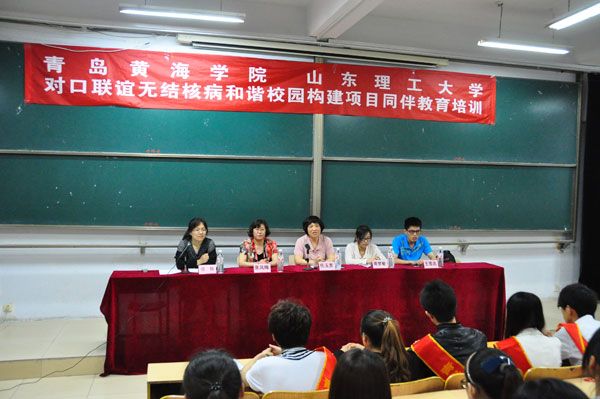5月23日下午,我校与山东理工大学联谊,在一号教学楼举行“对口联谊无结核病和谐校园构建项目同伴教育培训”启动仪式。山东理工大学校医院院长任玉宽、副院长张凤梅、我校团委书记张艳出席了本次活动。同时参加本次仪式的还有山东理工大学两名志愿者代表及我校志愿者三百余名。