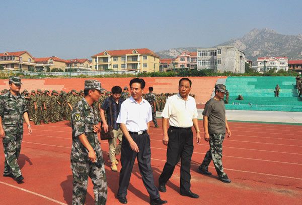 9月14日上午,校党委书记冯宜明、副院长杨春联等学校领导在军训团张万耀团长的陪同下,来到军训现场,视察军训工作,并对正在紧张训练的承训部队官兵和参训新生们表示亲切慰问。