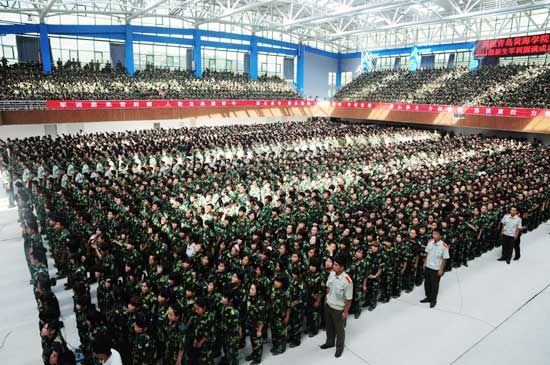 8月28日,青岛黄海学院2011级新生军训工作拉开帷幕,已报到的近6000名新生开始了长达15天的军训生活。