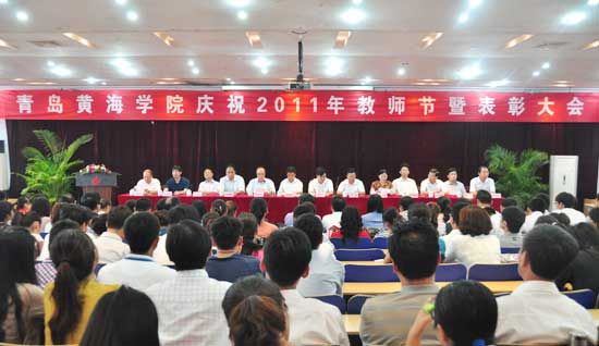 2011年9月8日下午3时,在学院一号教学楼西配学术报告厅庄严的国歌声中,青岛黄海学院庆祝2011年教师节暨表彰大会拉开了帷幕。400余名教职工代表济济一堂,学院董事长刘常青等院领导出席大会。大会由学院党委书记冯宜明主持,学院院长焦奎作重要讲话。