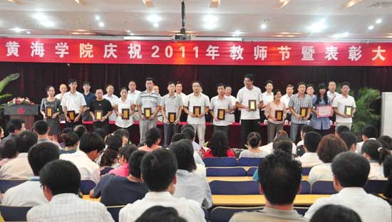 大会首先由学院常务副院长贺永宜宣读了《青岛黄海学院关于2011年教师节学年度表彰奖励的决定》。根据决定对38名优秀教师、30名优秀教育工作者、49名升本过程中先进个人、22名庆典活动中先进个人、21名新生接待中先进个人进行了表彰奖励。优秀教师代表孙维丽、优秀教育工作者代表魏龙吉、升本工作、学院两项活动及新生接待工作中的先进个人代表李镇江先后发言。