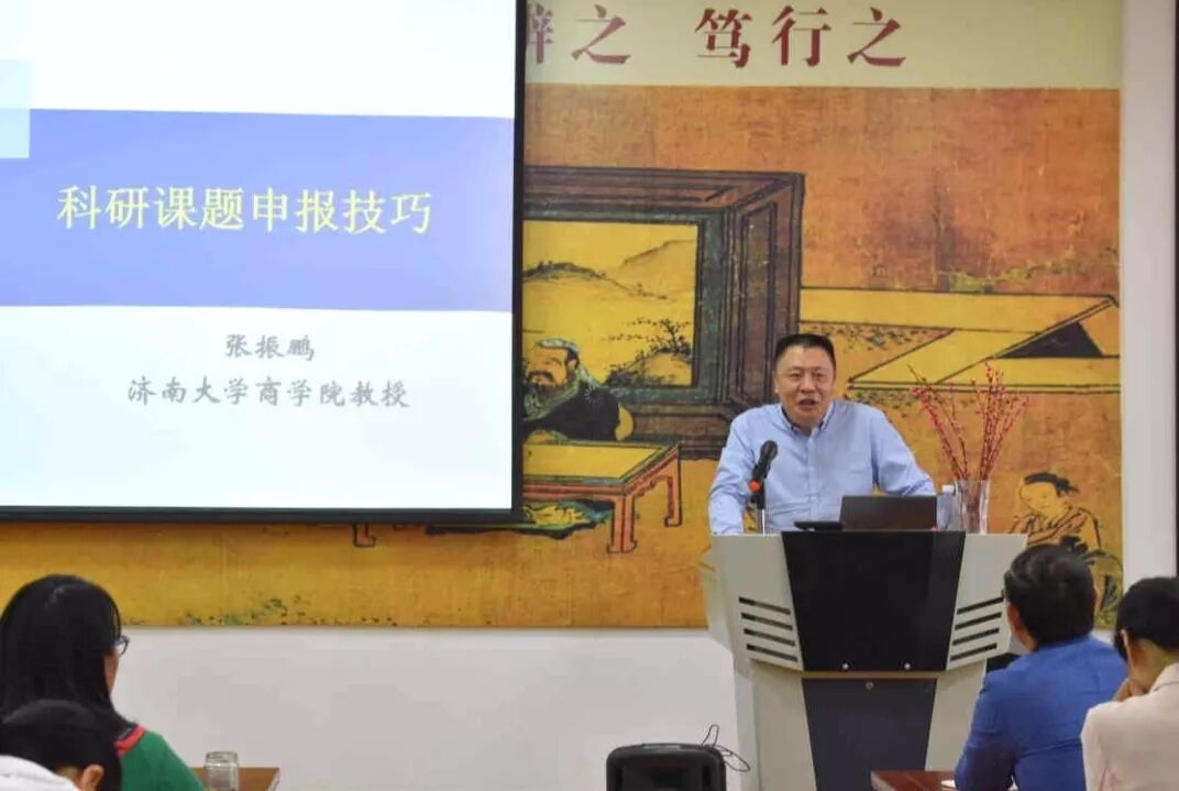 10月18日下午,“科研课题申报技巧”经验分享会在知诚楼316召开。济南大学张振鹏教授作为特邀嘉宾分享了课题申报技巧,国际商学院院长助理孙守强主持。