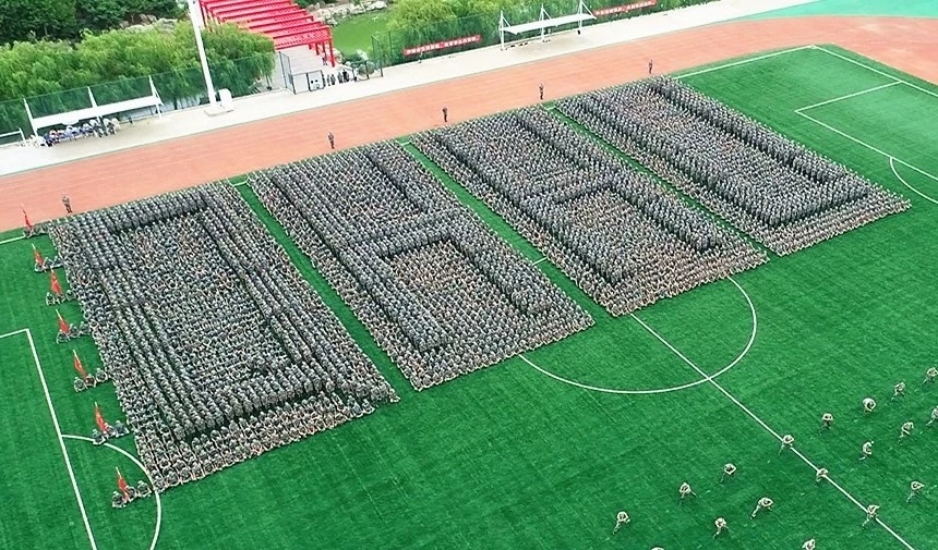 受阅方队摆出青岛黄海学院英文缩写“QHHU”