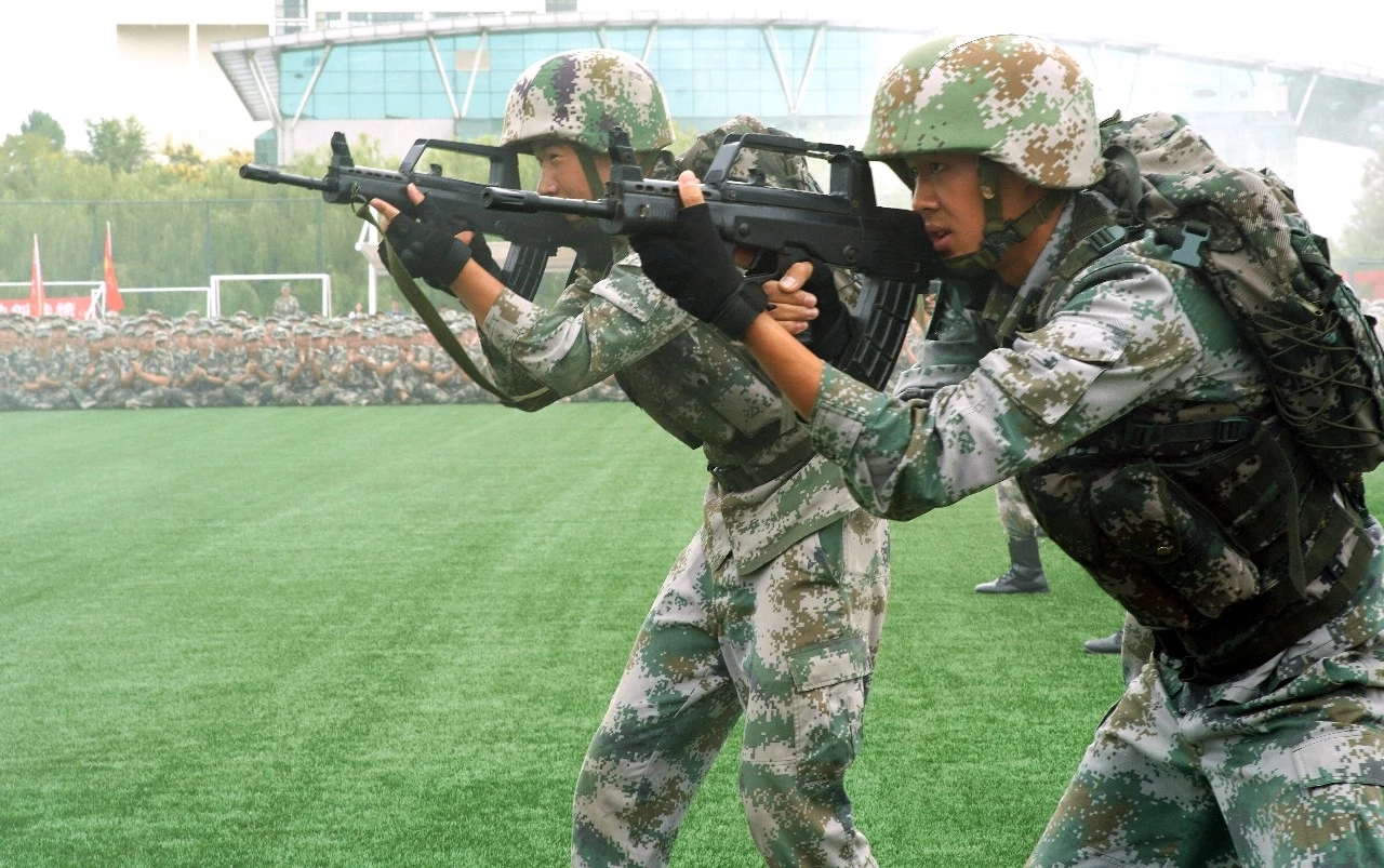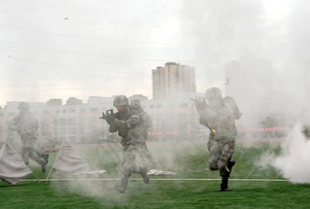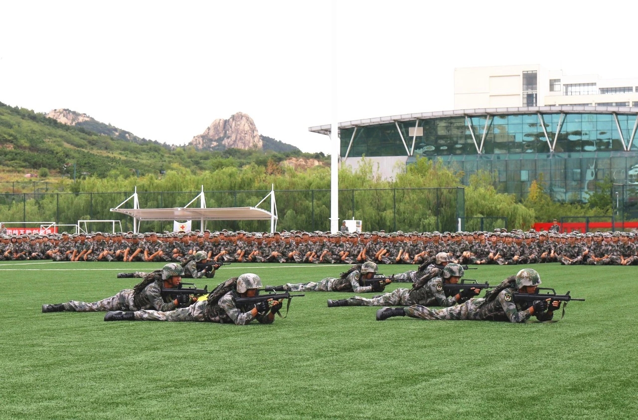 分列式开始,由2019级参训新生组成的受阅方队迈着整齐的步伐,喊着响亮的口号走过主席团接受检阅,他们昂首阔步、意气风发,展示了黄海学子的青春风采。随后,参训学生带来格斗表演,一招一式,虎虎生风;承训教官带来精彩的战术表演,他们身手敏捷,训练有素,气场十足,让人热血沸腾。