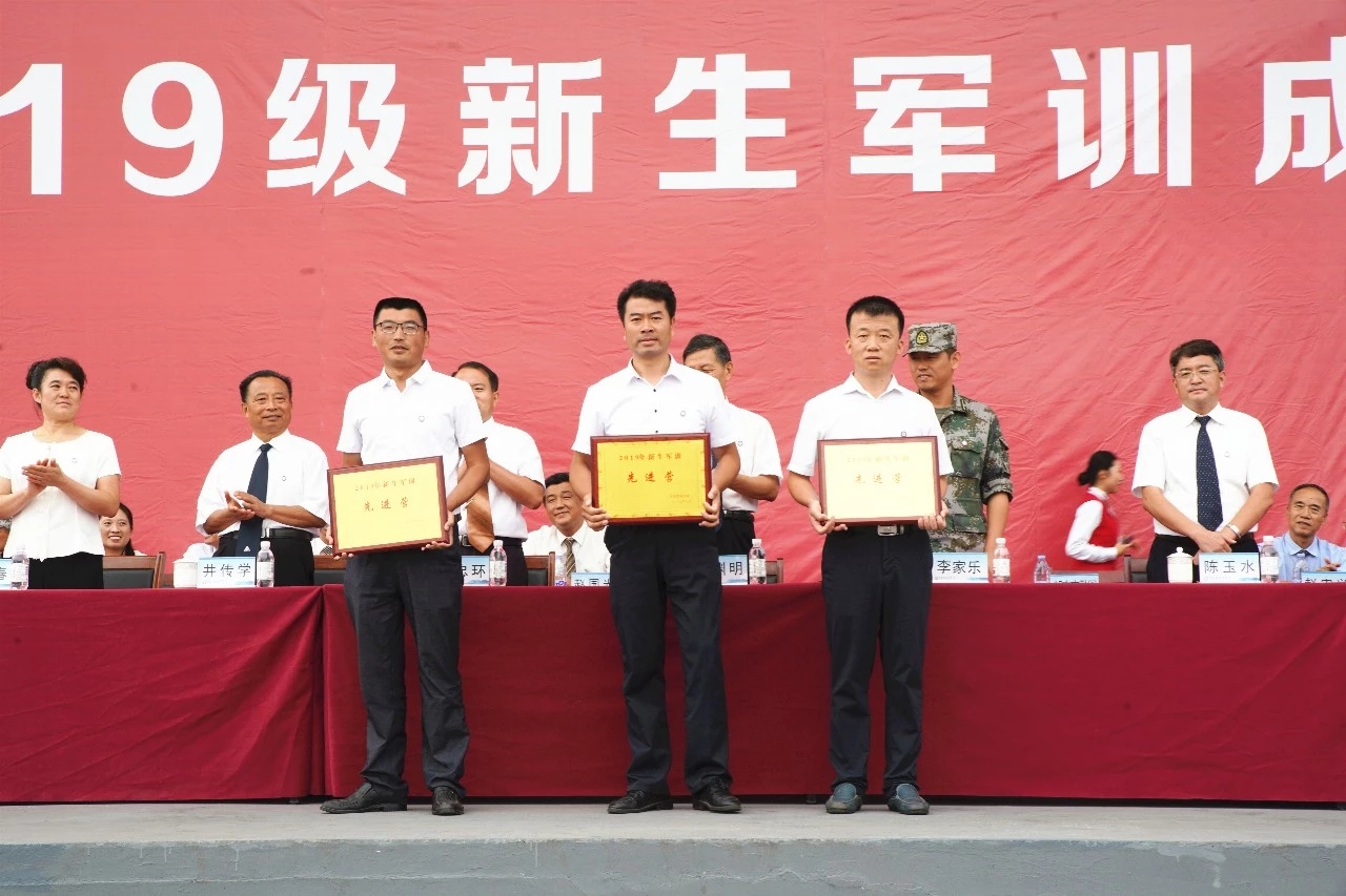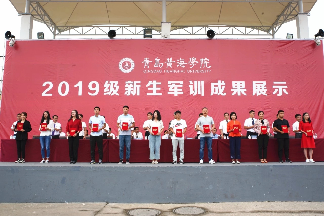 青岛黄海学院校长助理、2019级新生军训团政委刘纪新宣读《青岛黄海学院关于表彰2019级新生军训工作先进集体和个人的决定》,授予毛可佳等317名同学“优秀学员”荣誉称号,授予冯作龙等52名同学“优秀学生教官”荣誉称号,授予张业等17名同志“优秀带训教师”荣誉称号,授予2号公寓134宿舍等107个宿舍“优秀宿舍”荣誉称号,授予一营一连等25个方队“先进连”荣誉称号,授予军训五营艺术学院、七营学前教育学院、一营智能制造学院为2019级新生军训“先进营”荣誉称号。受表彰的先进个人和集体代表依次上台领奖