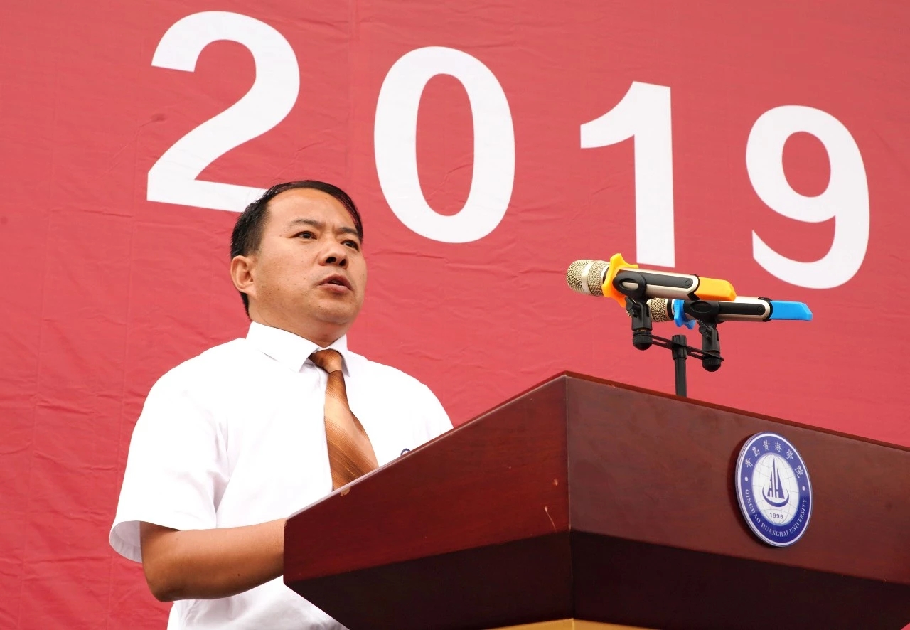 9月12日上午,青岛黄海学院2019级新生军训成果展示暨总结表彰大会在校体育场隆重举行。校长王渊明、副校长梁忠环等学校领导,军训领导小组成员,承训部队领导及教官,各二级学院、职能部门负责人及2019级全体新生参加了大会。学生工作部部长、军训团副团长杨晓磊主持大会。