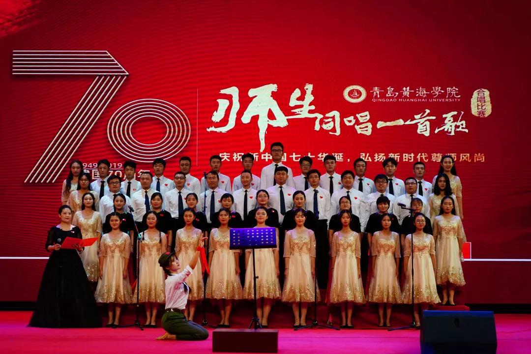 由青岛黄海学院举办的“庆祝新中国七十华诞,弘扬新时代尊师风尚” 为主题的大型合唱比赛于2019年9月26日晚在体育馆拉开帷幕,提前庆祝中华人民共和国成立七十周年,重燃激情岁月。