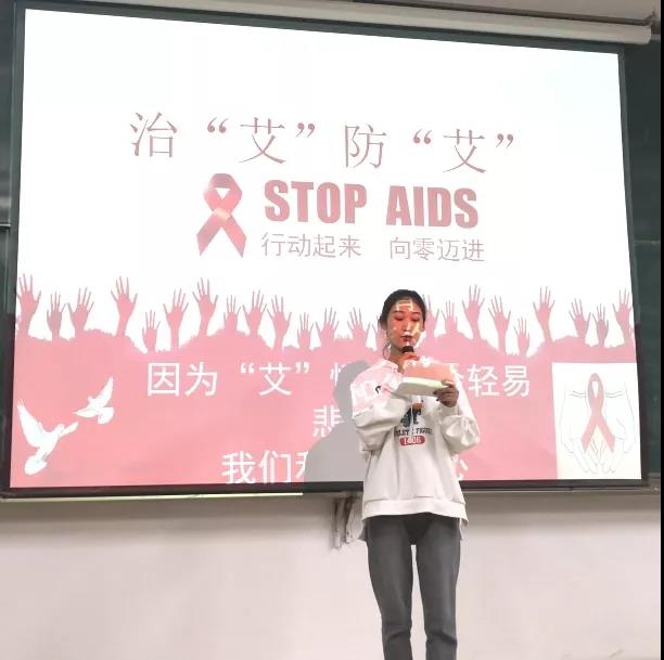 比赛中每一位选手自然大方地将自己精心准备的内容展现给大家。在这个过程中我们也意识到:作为新时代的大学生,应当承担起时代和社会所赋予的责任,学习预防艾滋病相关知识,努力消除社会对艾滋病患者、感染者的歧视,与他们平等相处。