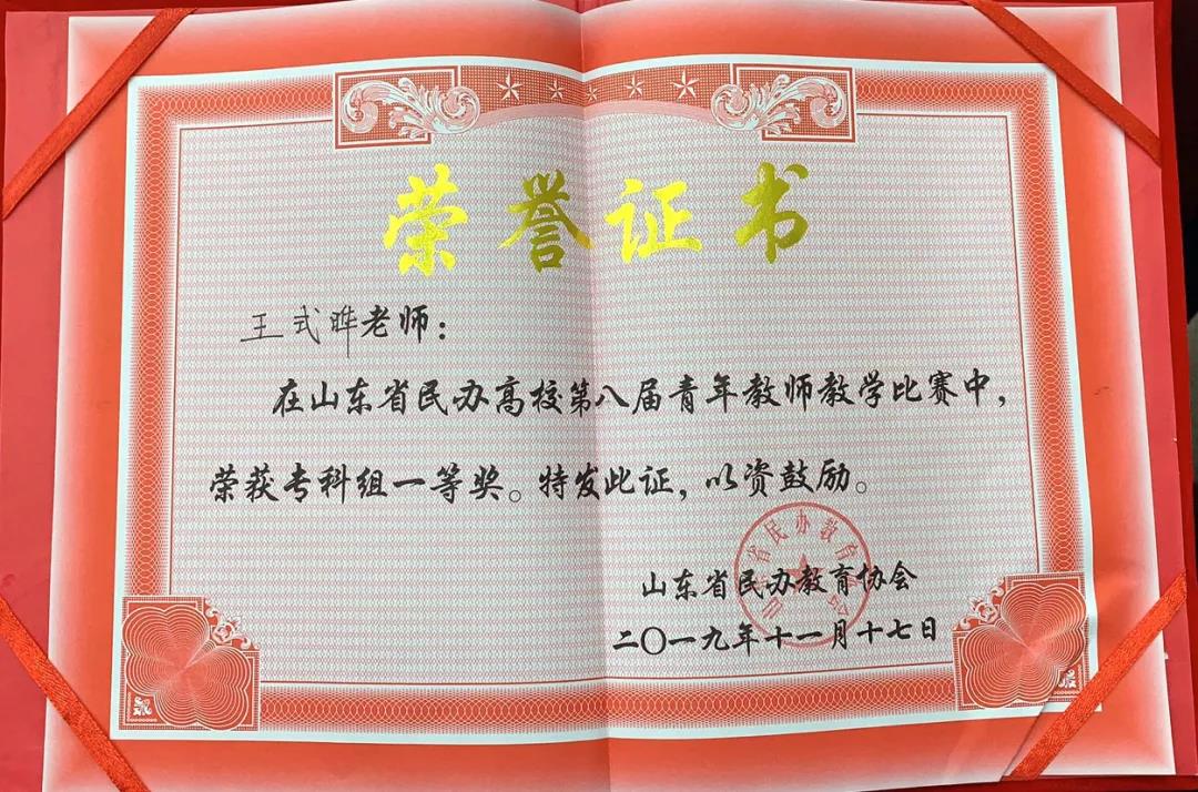 山东省民办高校青年教师教学大赛是山东省民办高校迄今为止规模最大、规格最高的教学技能大赛,至今已连续举办八届。据悉,本届大赛以“加强青年教师培养,鼓励青年教师更新教育理念、掌握现代教学方法,努力造就一支师德高尚、业务精湛、充满活力的高素质专业化教师队伍”为目的,从教学目标、教学设计、教学手段、教学效果及综合素质等方面对参赛选手进行综合考察。比赛共有来自全省16所民办院校的30余名教师同台竞技,王式晔老师采用信息化教学手段对传统课堂进行革新,实行以学生为中心的教学范式,极大地提升了授课效果,获得评委们的一致好评。