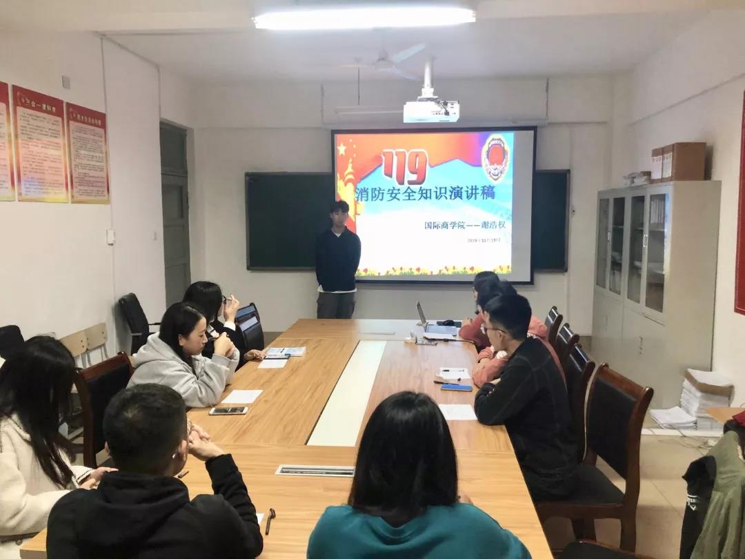 11月17日下午国际商学院在知新楼324教室举行“消防安全宣讲比赛”初赛,由主席团副主席邴亚茹、副主席许寅昊、纪检部部长徐双、生活部部长张鑫琪、新媒体中心主任王智永、学术研究部部长吴春峰、副部王胜杰、女生部副部张澳洁担任此次评委。