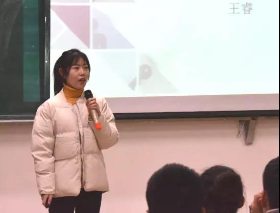 王睿学姐先向我们宣讲,她对大家说:“要让优秀成为一种习惯,不忘初心,方得始终。我们要一直带着心中的那份炽热去勇敢的追逐自己的梦想。”