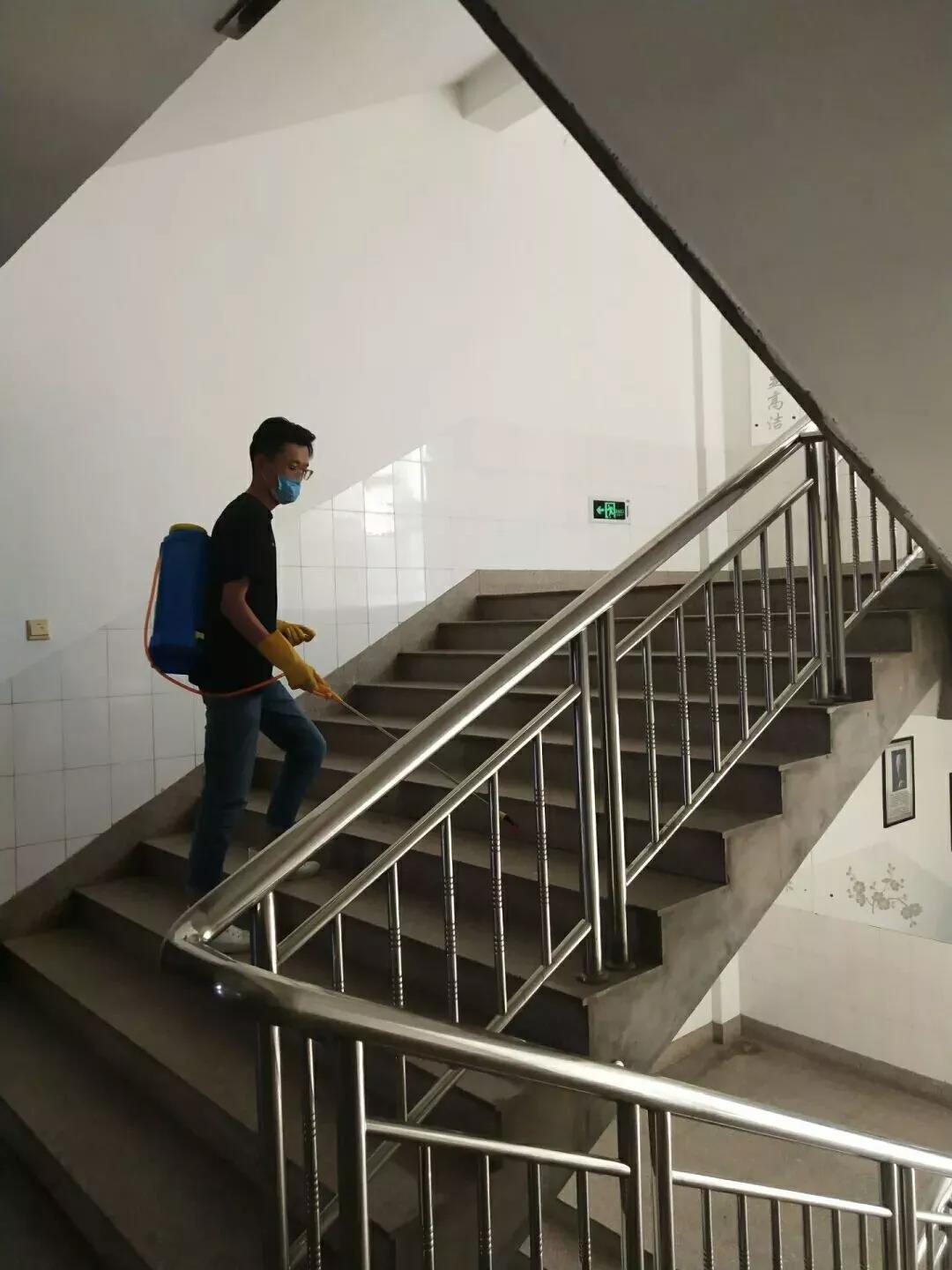 为有效预防疾病传播,给同学们创造一个健康清洁的学习生活环境,我院学生会部分同学于12月6日中午对学生公寓楼和教学楼进行了卫生消毒工作。