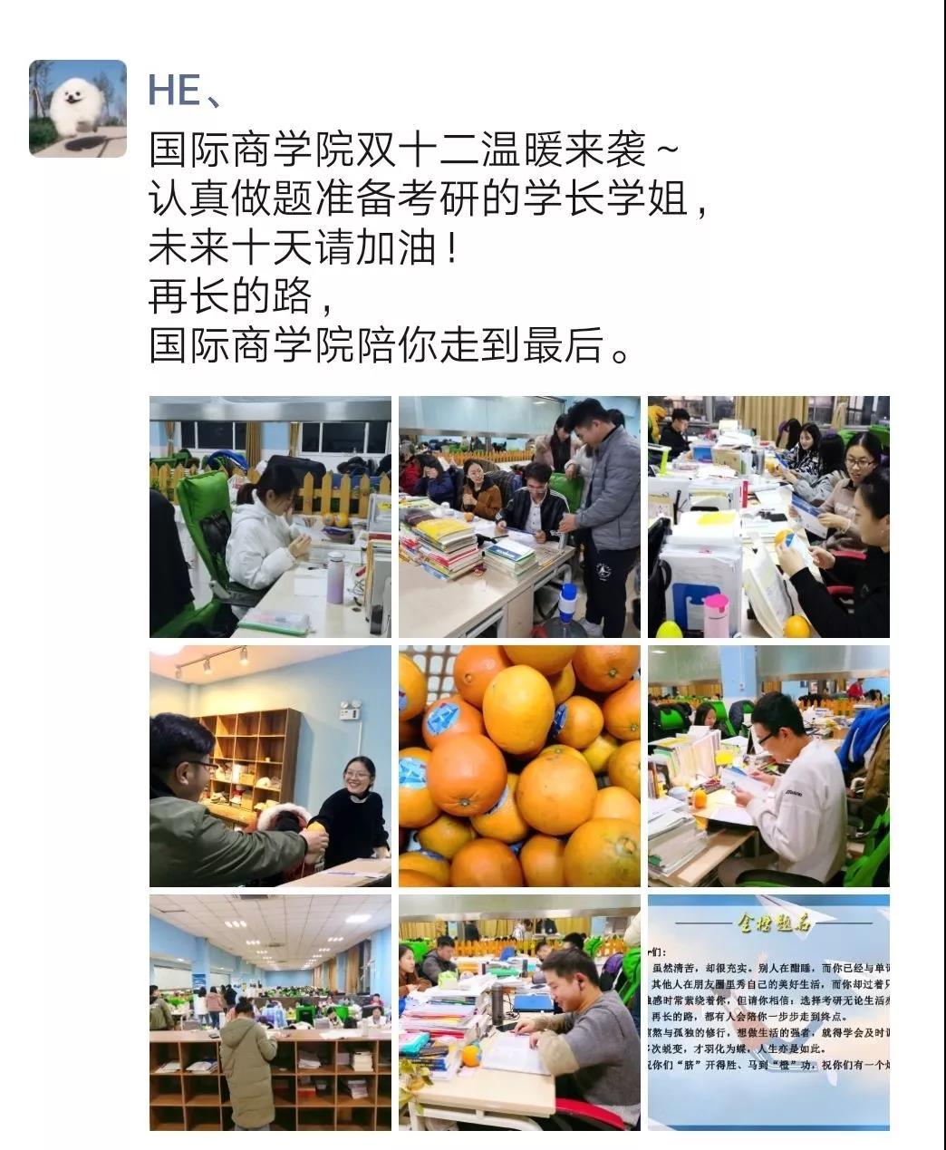 距离考研的日子越来越近了,即使是在这寒冷的日子里,我们的考研学子们依旧没有懈怠。今晚,国际商学院学生会联合团总支向考研学长学姐们送上了我们的暖心祝福,给他们送了一份双十二礼物。