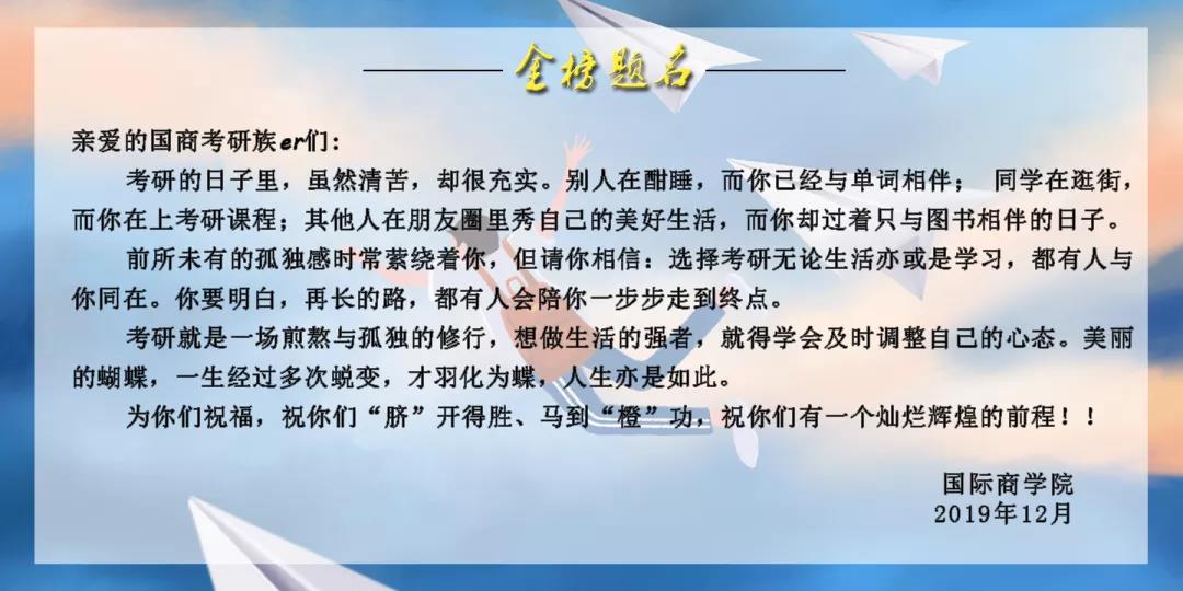 学长学姐们,你们不是一个人在奋斗,别忘了,还有朋友的祝福,父母的叮咛,我们都是你们最坚强的后盾。努力备考的同时,更要照顾好自己的身体。希望今晚的小礼物你们会喜欢,小e会一直默默支持着你们。加油!