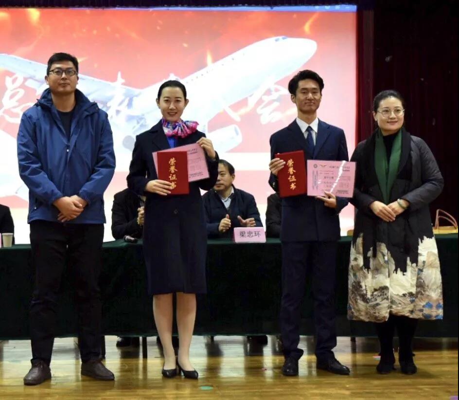 12月26日,在知明楼珠山礼堂隆重召开了北京航空2019年度优秀学生表彰大会。出席本次大会的嘉宾有:北京华航航空服务有限公司副总经理温振军、青岛黄海学院副校长梁忠环、青岛黄海学院招生办主任刘常江、国际商学院常务副院长尹成波、国际商学院院长助理崔久岗、国际商学院航空教研室主任李岳、国际商学院学工主任崔积学以及航空专业教学教师。