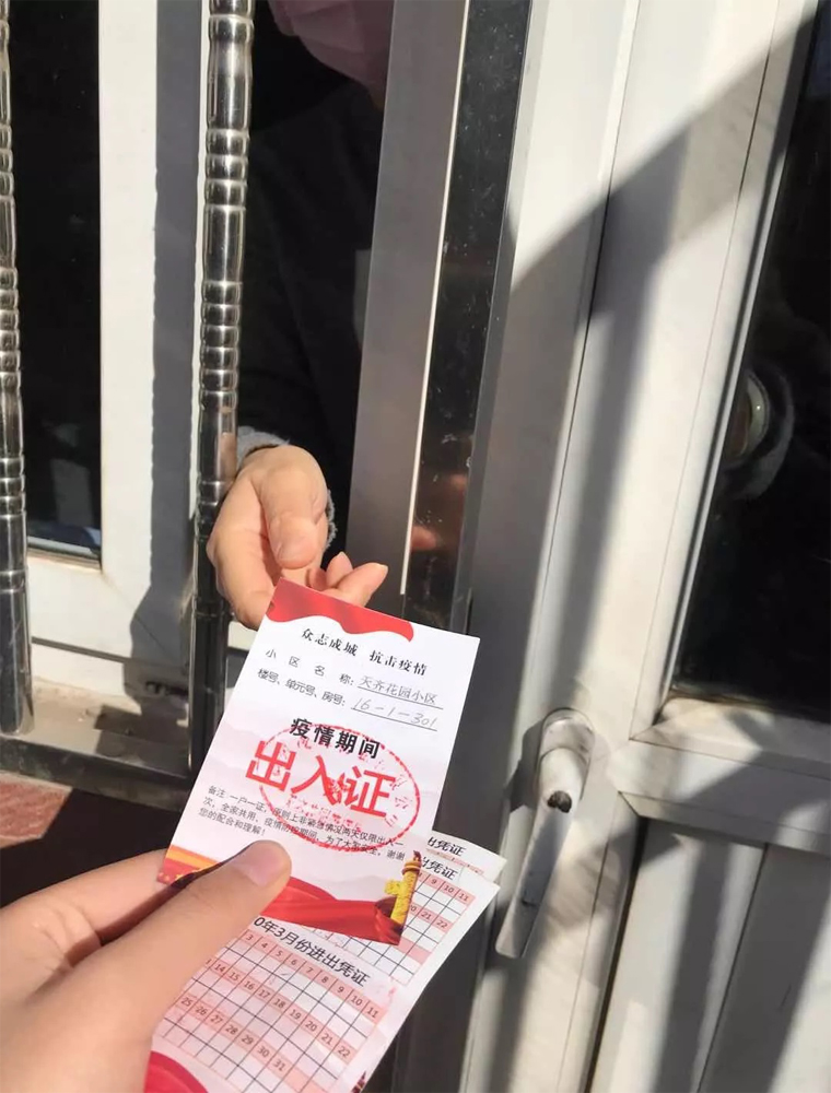 从15号上午开始发放,不到一天的时间便发放完毕,对没有在家的住户我们把出入证装在塑料袋里挂在门上。每敲一次门,我们都会收到一句句的谢谢,累并快乐着,温暖也涌上心头。
